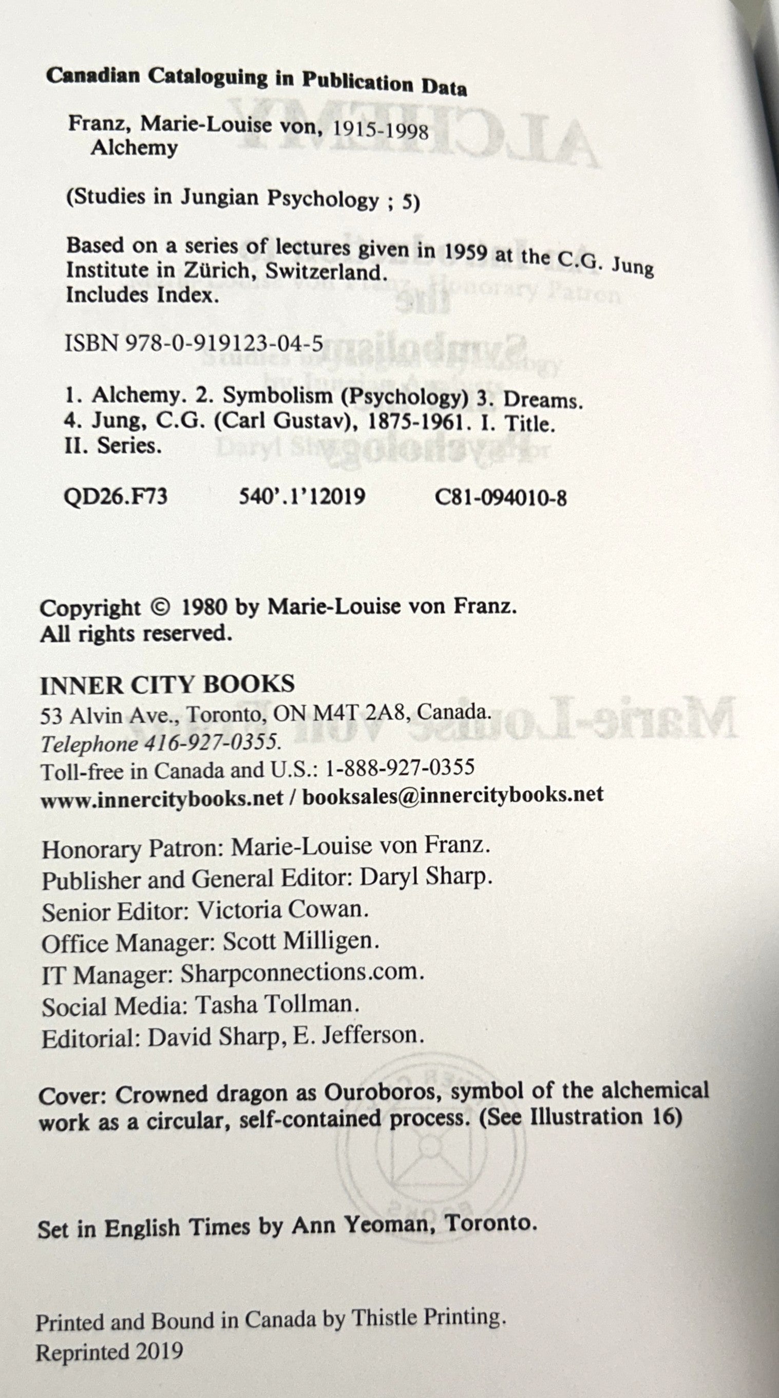 Alchemy: An Introduction to the Symbolism & the Psychology by Marie-Louise von Franz 2019