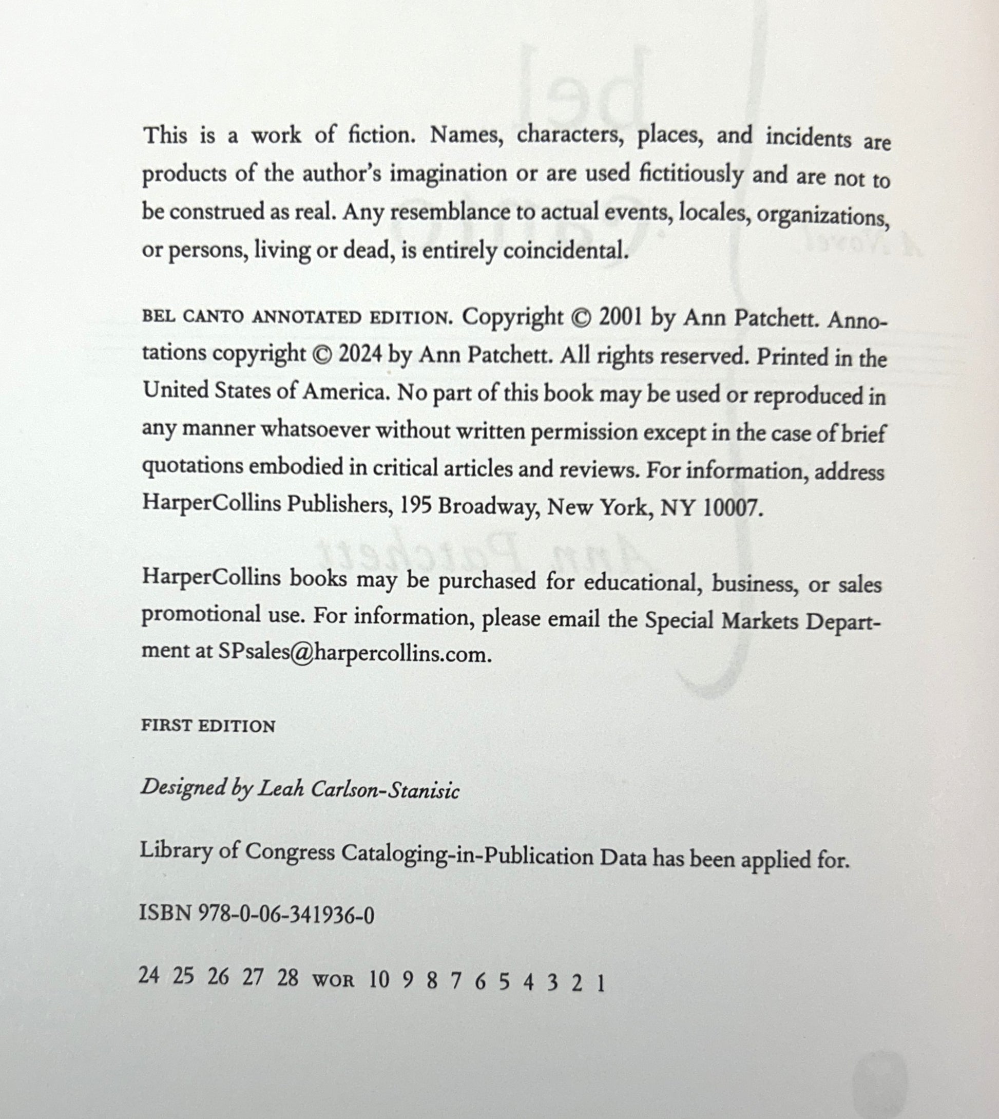 Bel Canto (Annotated Edition) by Ann Patchett 2024 SIGNED 1st Edition