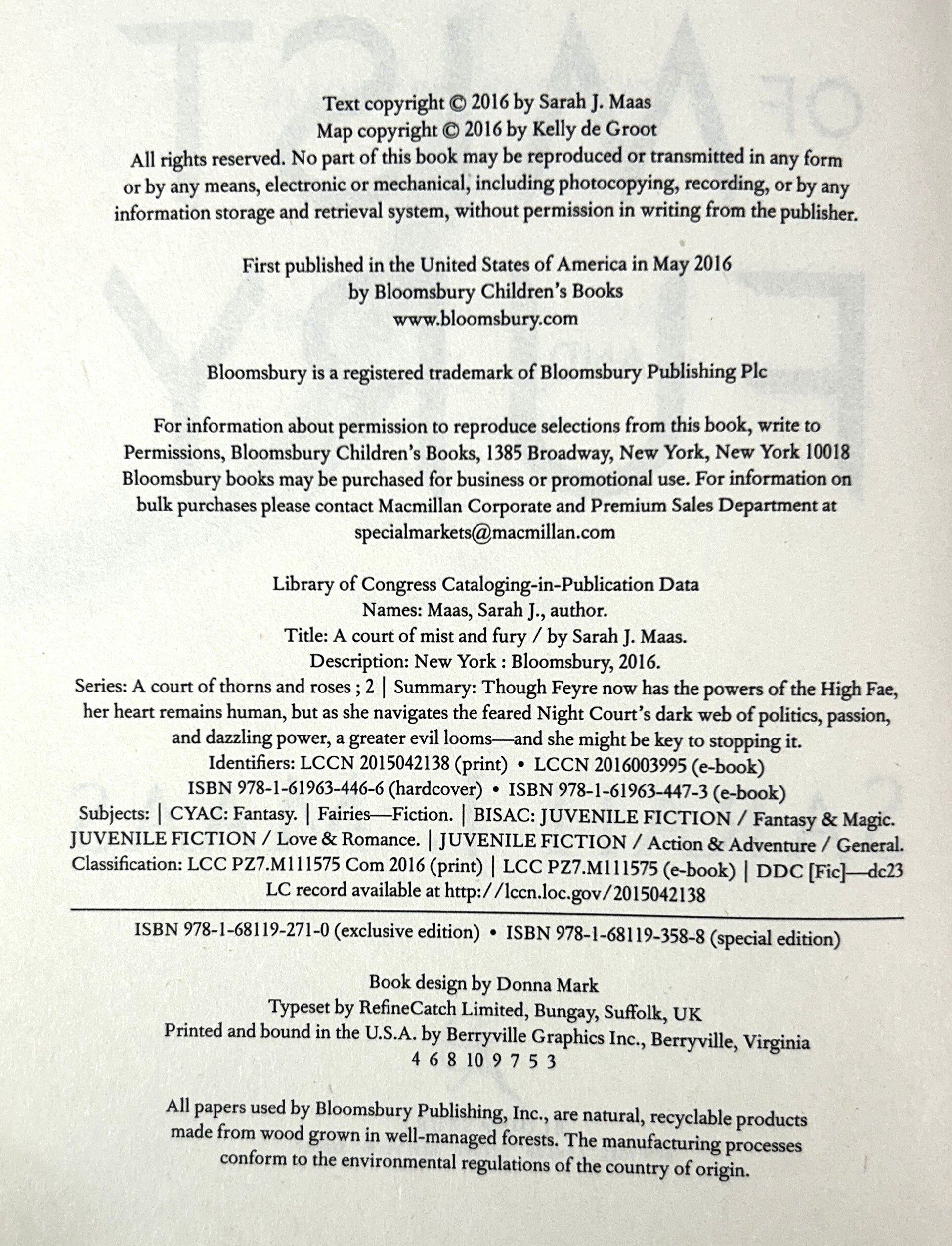 Court of Mist & Fury (Court of Thorns & Roses #2) by Sarah J. Maas 3rd Printing OOP Cover