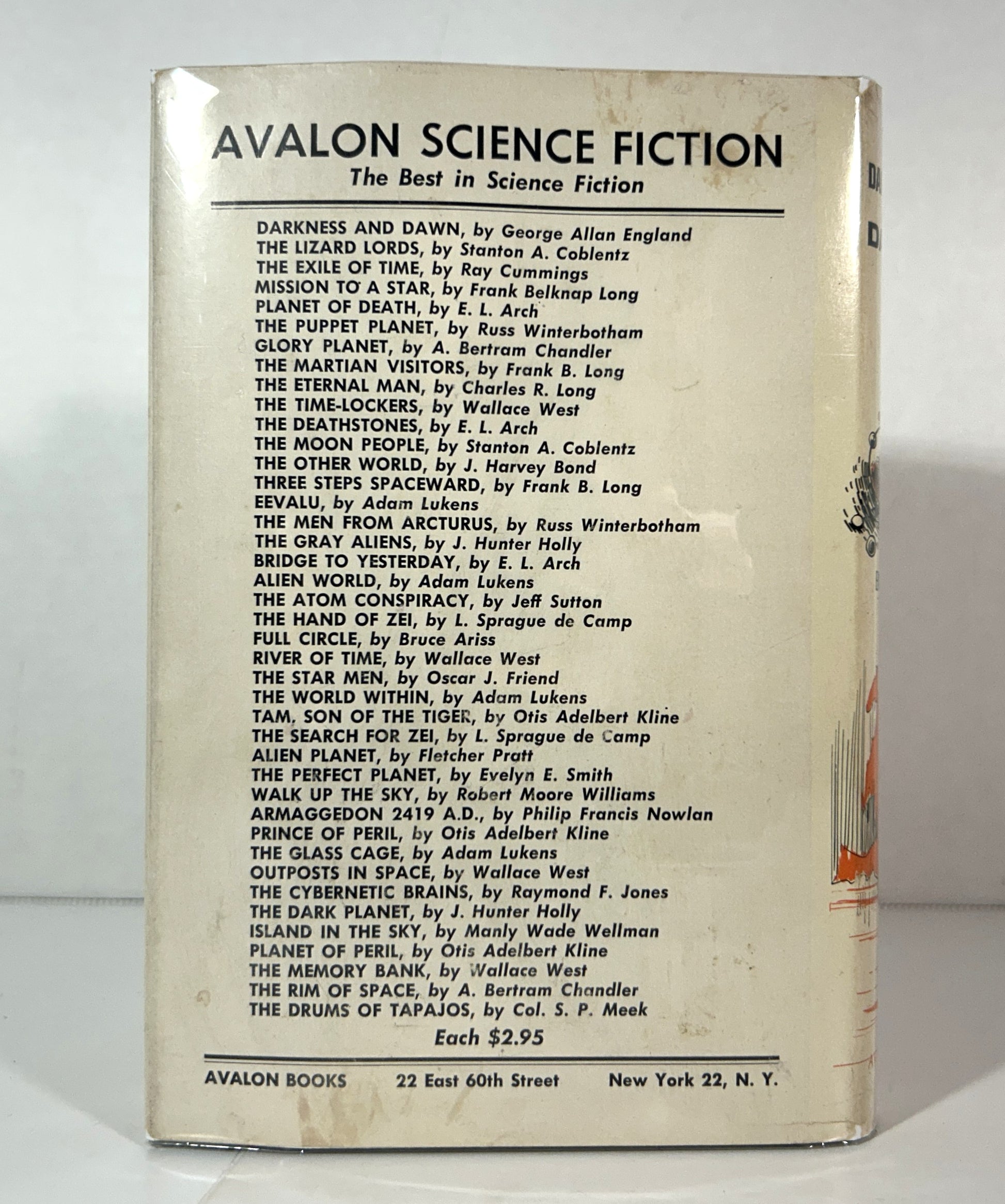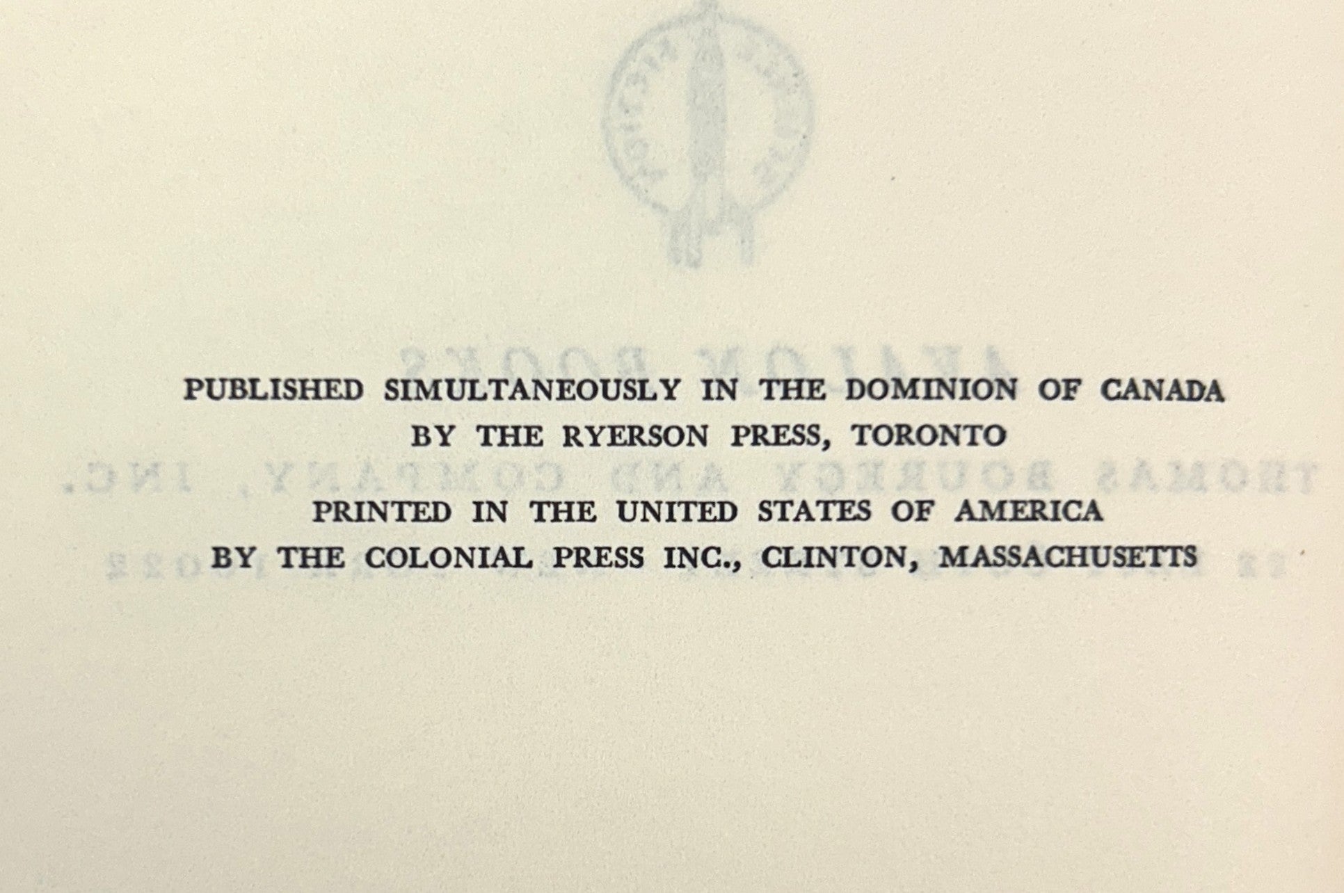 Good, vintage, hardcover book in good dust jacket; the book is clean, tight, square, and free of any markings showing lightly thumbed pages (see photos), a previous sticker to the front end page (see photos), very faint marks to the top corner of the front free end page (see photos), and light rubbing along the board edges (see photos) but otherwise showing only light additional wear; dust jacket is clipped (see photos) and shows moderate shelf wear, including significant age-toning (see photos), chipping to the head and foot of the spine (see photos), and scuffing/staining to the back panel (see photos) but remains in good, vintage, condition. W1