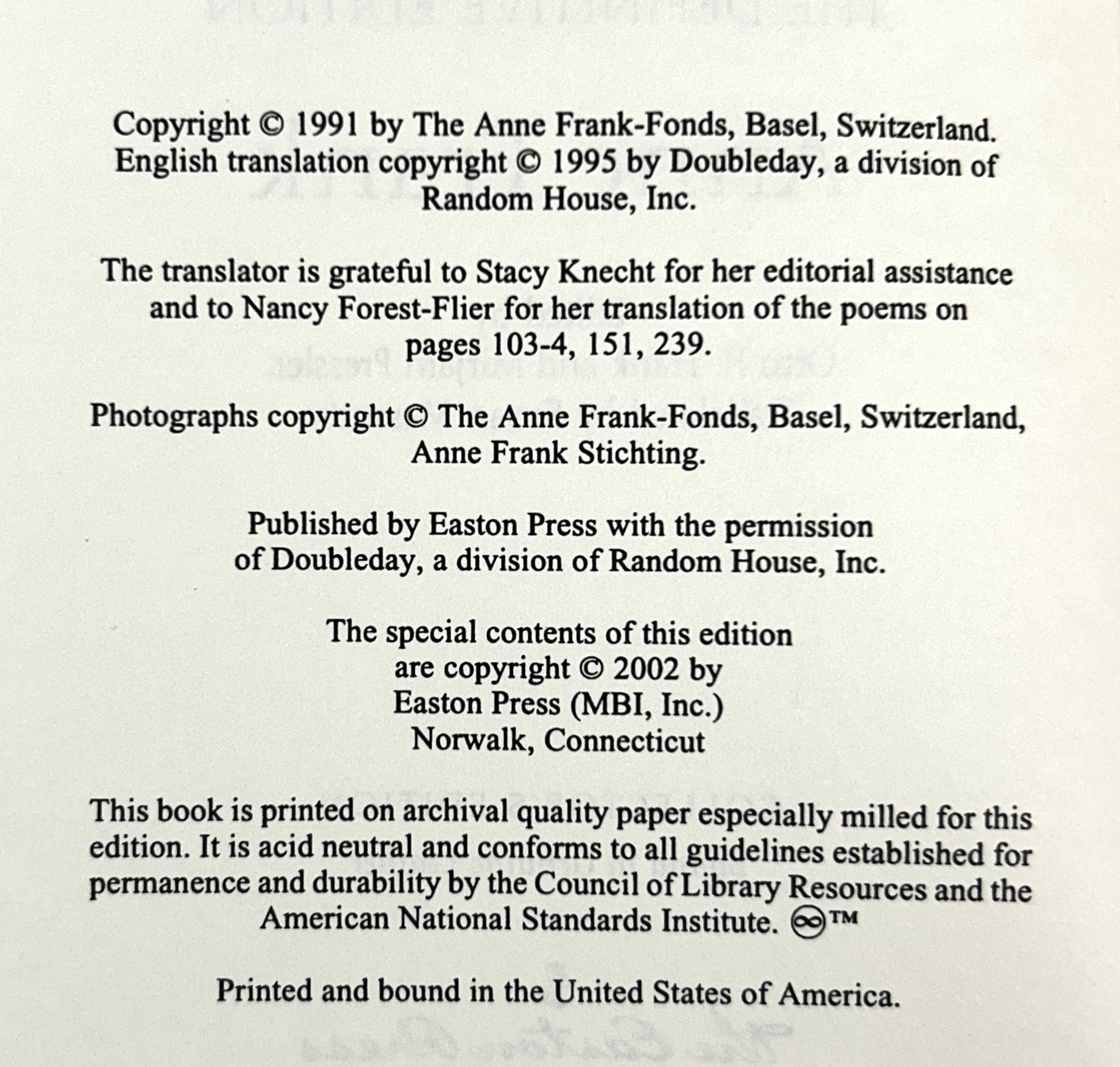 Easton Press: Diary of a Young Girl by Anne Frank 2002