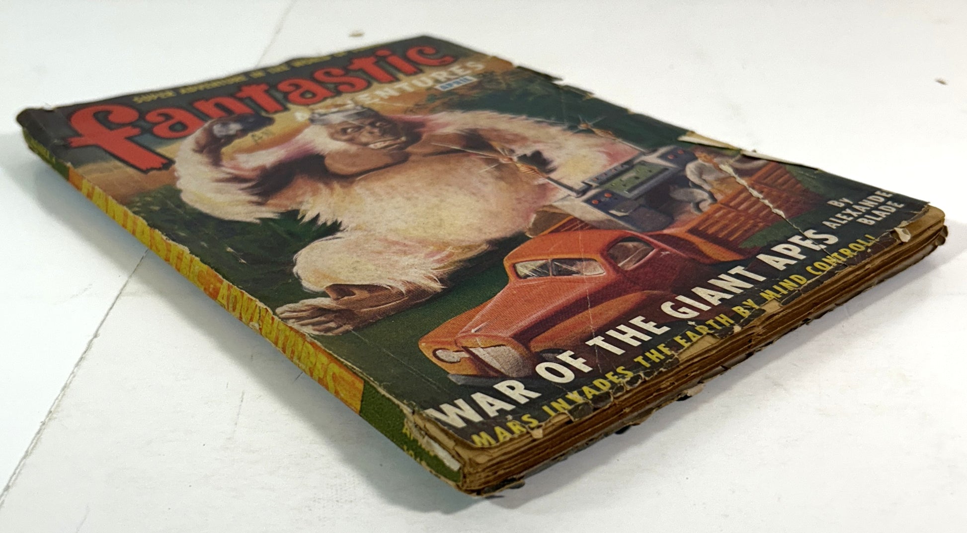 Acceptable, vintage, softcover pulp magazine; the magazine is square and showing heavily thumbed and age-toned pages (see photos); magazine cover (wrap) shows heavy shelf and corner wear, including heavy age-toning (see photos), heavy chipping along all edges and corners (see photos), and front cover has been completely severed, but text block remains intact (see photos) and cover remains in acceptable, vintage, condition. U3