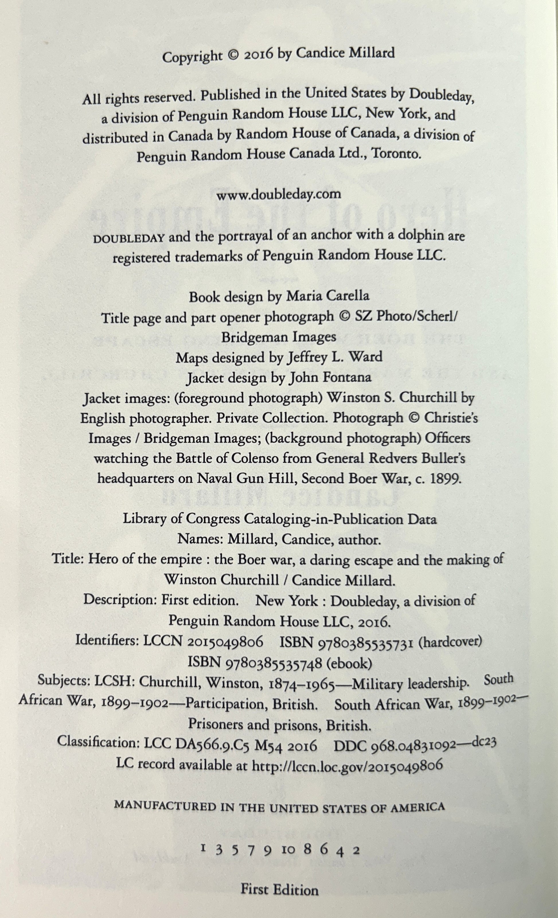 Hero of the Empire: Boer War, a Daring Escape & the Making of Winston Churchill by Candice Millard 2016 SIGNED 1st Edition