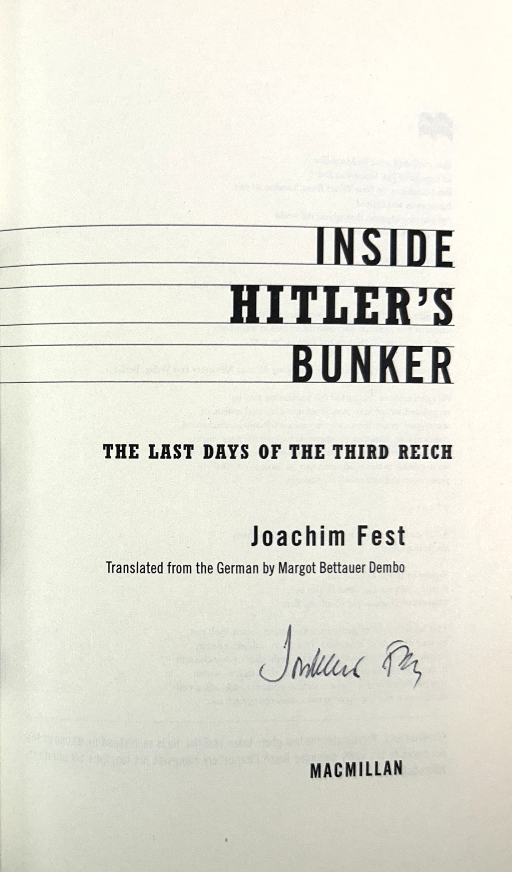 Inside Hitler's Bunker: The Last Days of the Third Reich by Joachim Fest 2004 SIGNED