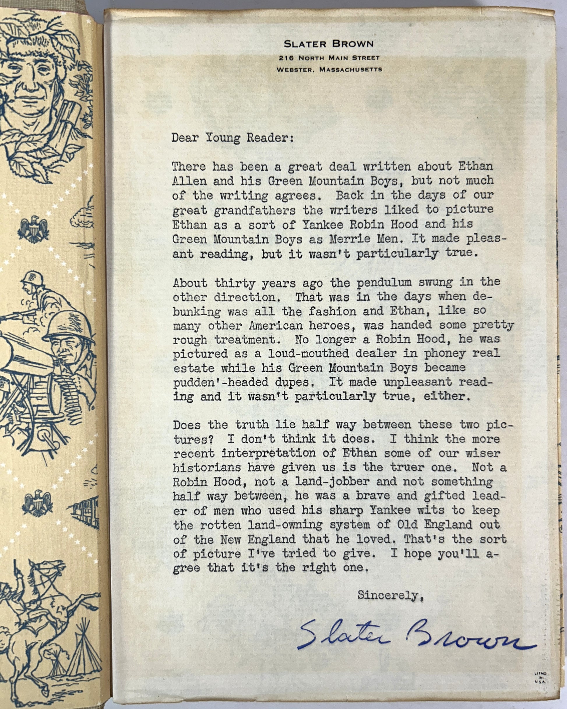 Landmark #66: Ethan Allen and the Green Mountain Boys by Slater Brown 1956 1st Printing w/ SIGNED Author's Letter