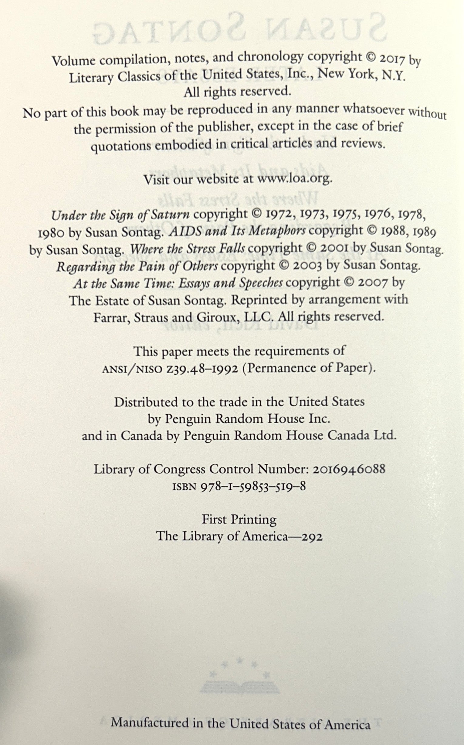 Library of America: Sontag: Later Essays 2019