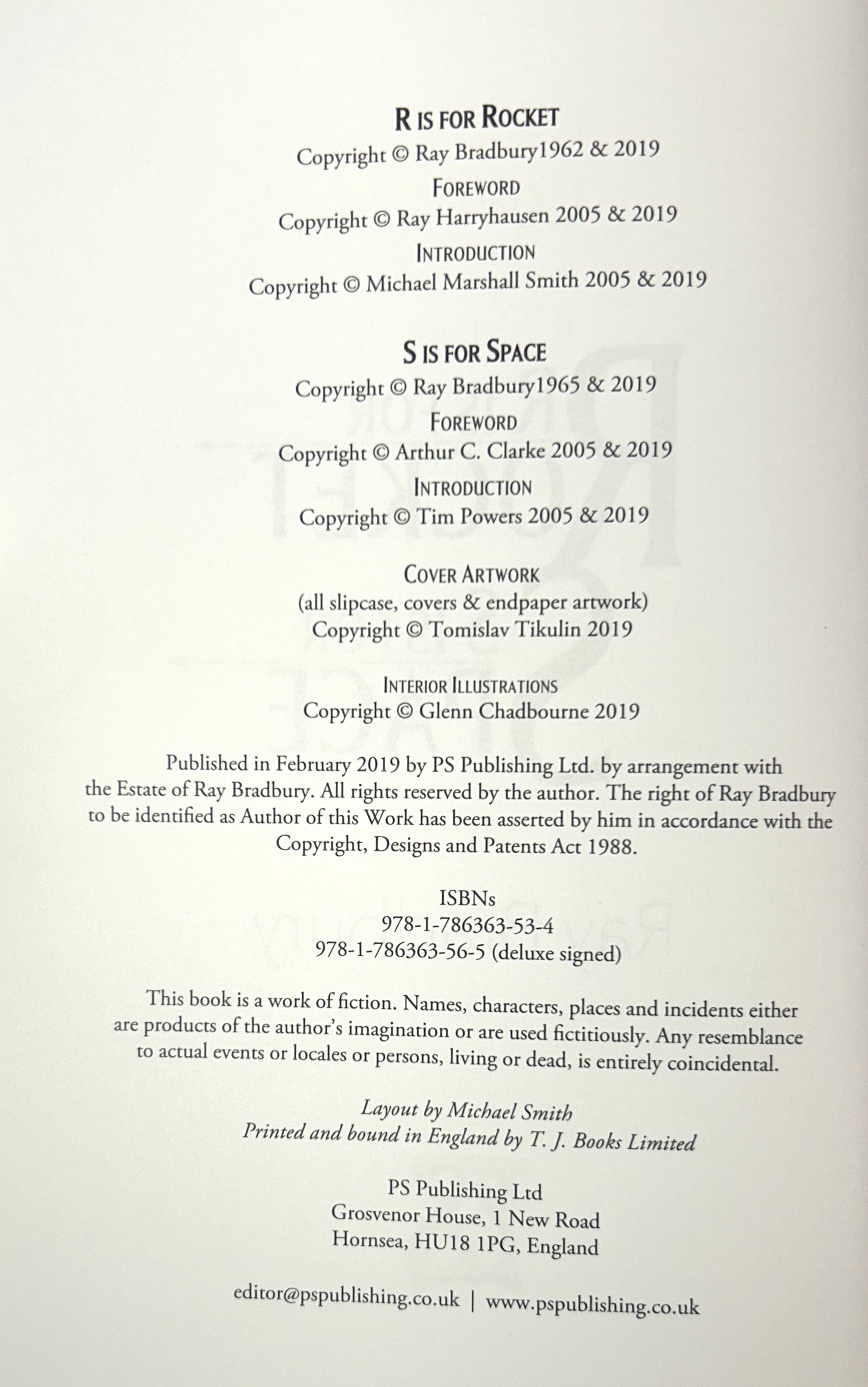 R is For Rocket/S is for Space by Ray Bradbury 2019 SIGNED x2 Ltd Ed