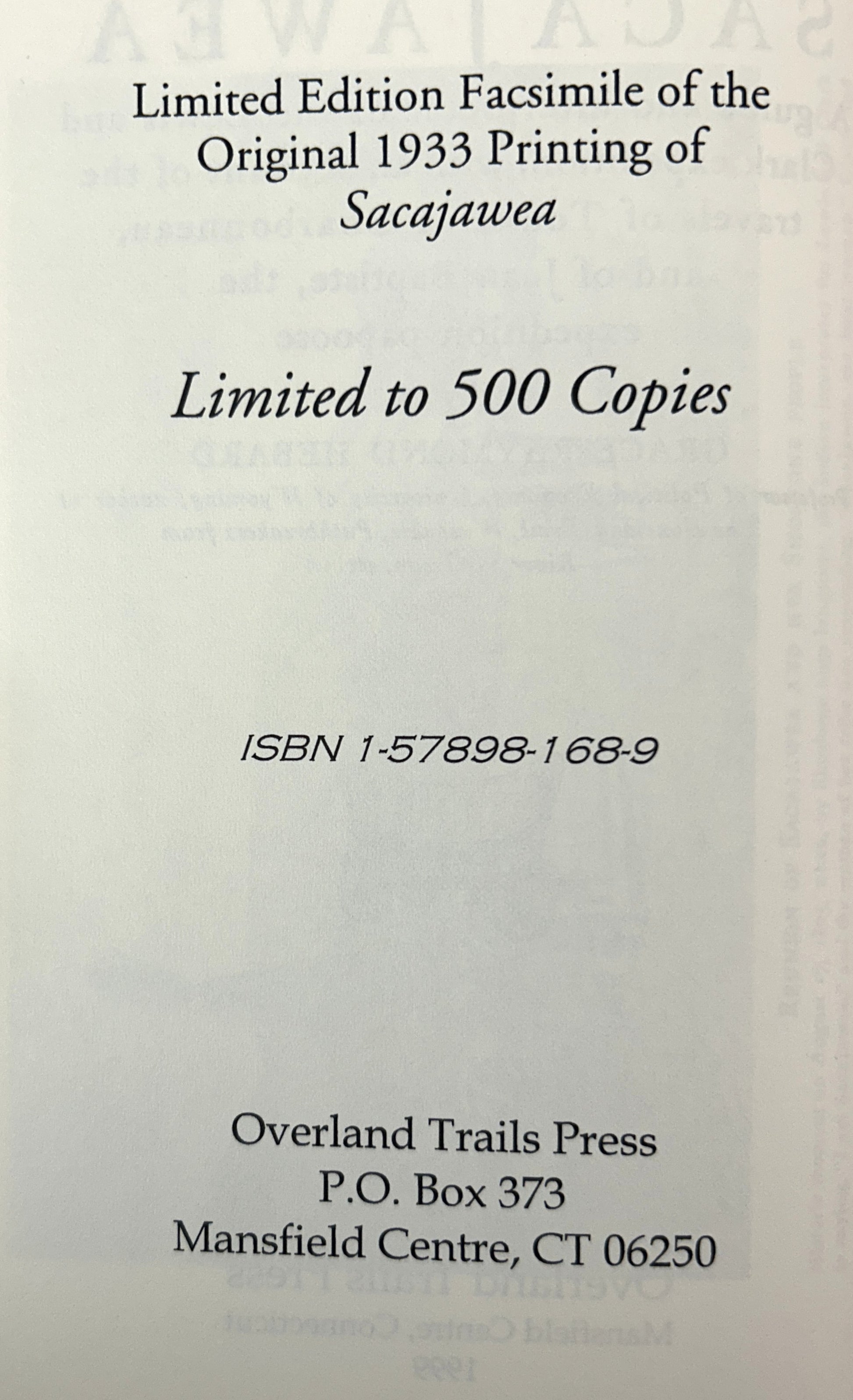 Fine hardcover book; never having been read and new, the book is clean, tight, square, and free of any markings; boards remain in similarly fine, new condition; 340 pages; 1999 facsimile reprint of 1933 edition by Arthur H. Clark Company. D2 EB