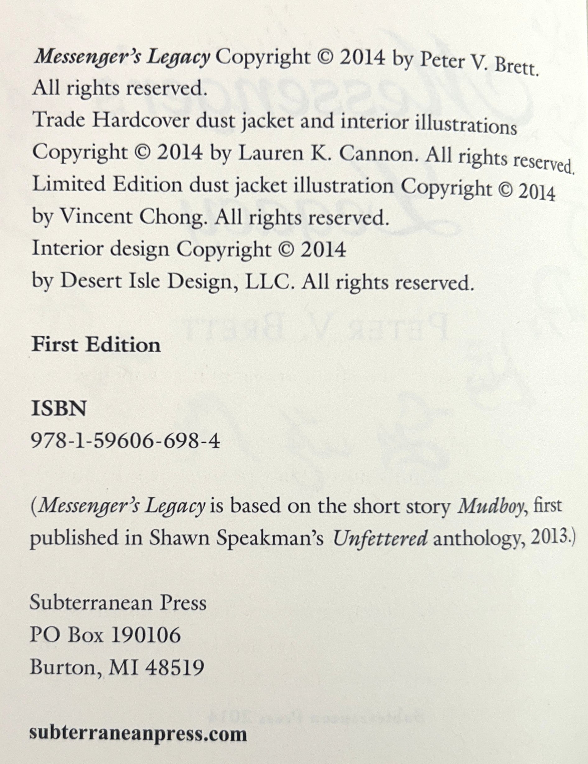 Set of 3 bear fine hardcover books in near fine dust jackets; each book is clean, tight, square, and -- but for the author's signature and limitation numbers on the limitation/title pages (see photos) -- free of any markings showing little to no evidence of having been previously read; each unclipped dust jacket shows very light shelf wear but remains in near fine condition; published 2010-2014 by Subterranean Press; first editions; purchaser signature may be required upon delivery; set includes:
