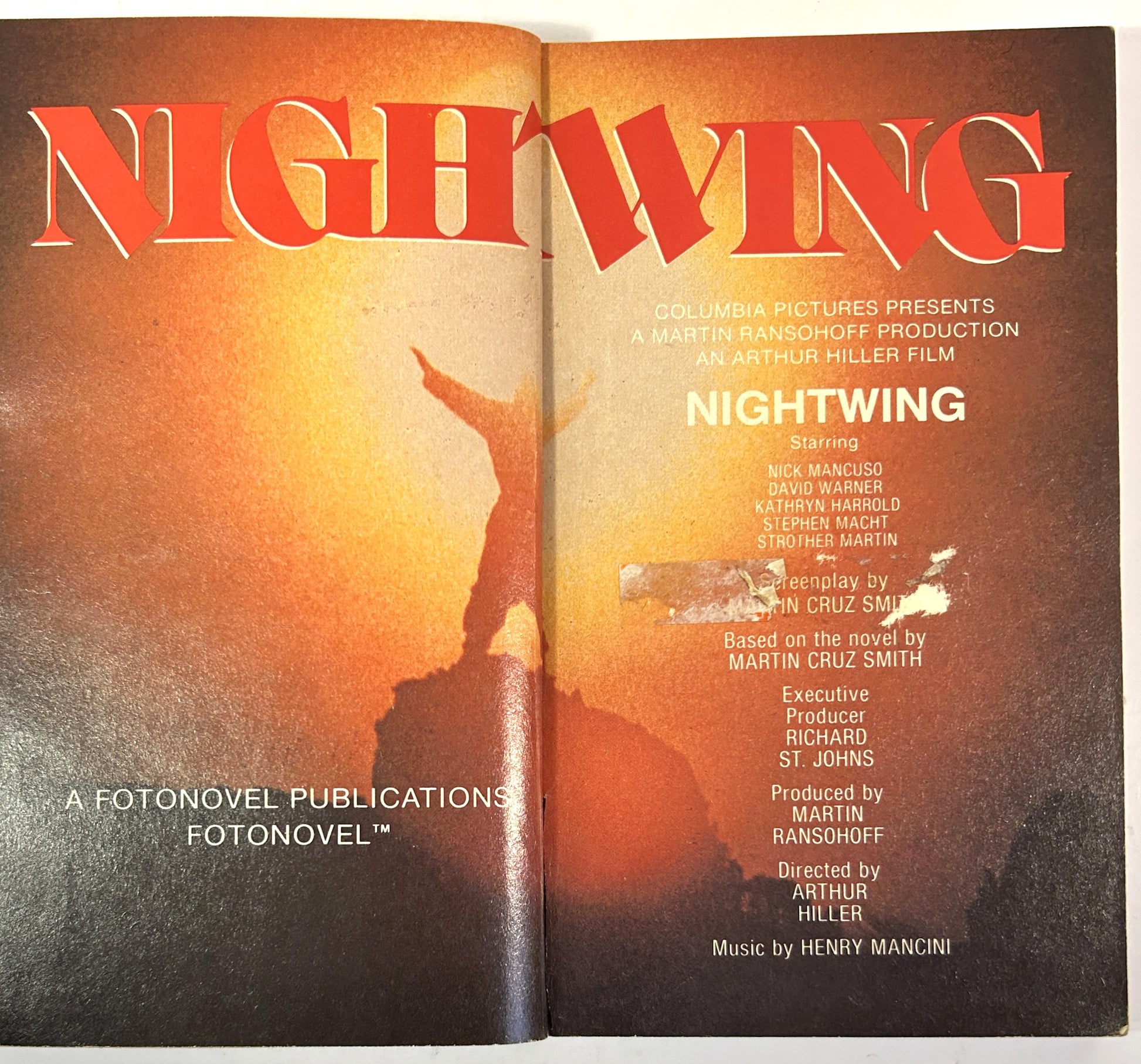 Set of 5 good, vintage, mass market paperback books; each book is clean, square, and showing light to well thumbed and age-toned pages (see photos), marks to the page edges of 4th Kind (see photos), stamps and markings to the front end pages of Body Snatchers (see photos), marks to the front end page and half title page of Night Wing (see photos), and tearing along the gutter of Battlestar Galactica that has been repaired with tape (see photos); each book cover (wrap) shows moderate shelf wear, including light age-toning (see photos), creasing along the spine of Battlestar Galactica (see photos), and light to well bumped corners (see photos) but remains in good, vintage, condition; purchaser signature may be required upon delivery. F4