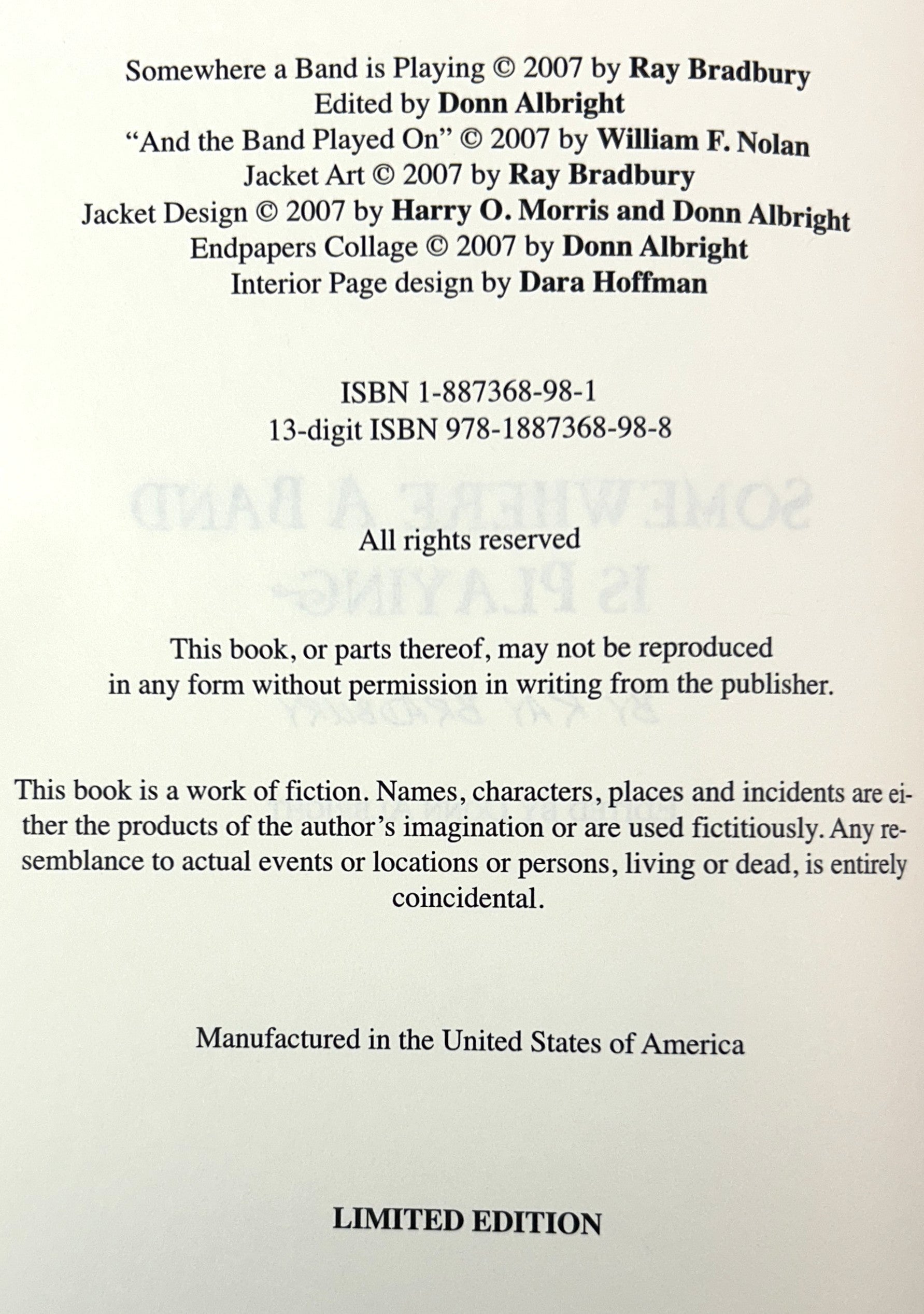 Somewhere A Band is Playing by Ray Bradbury 2007 Ltd Ed Gauntlet Press