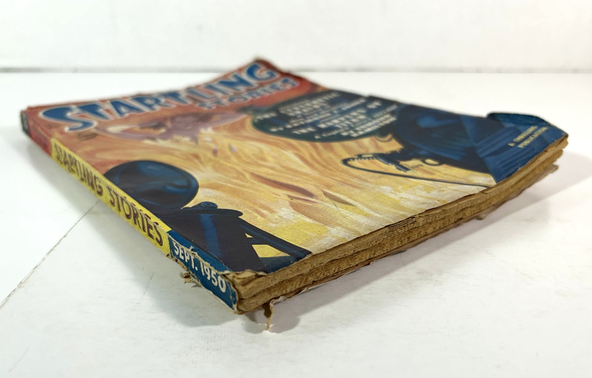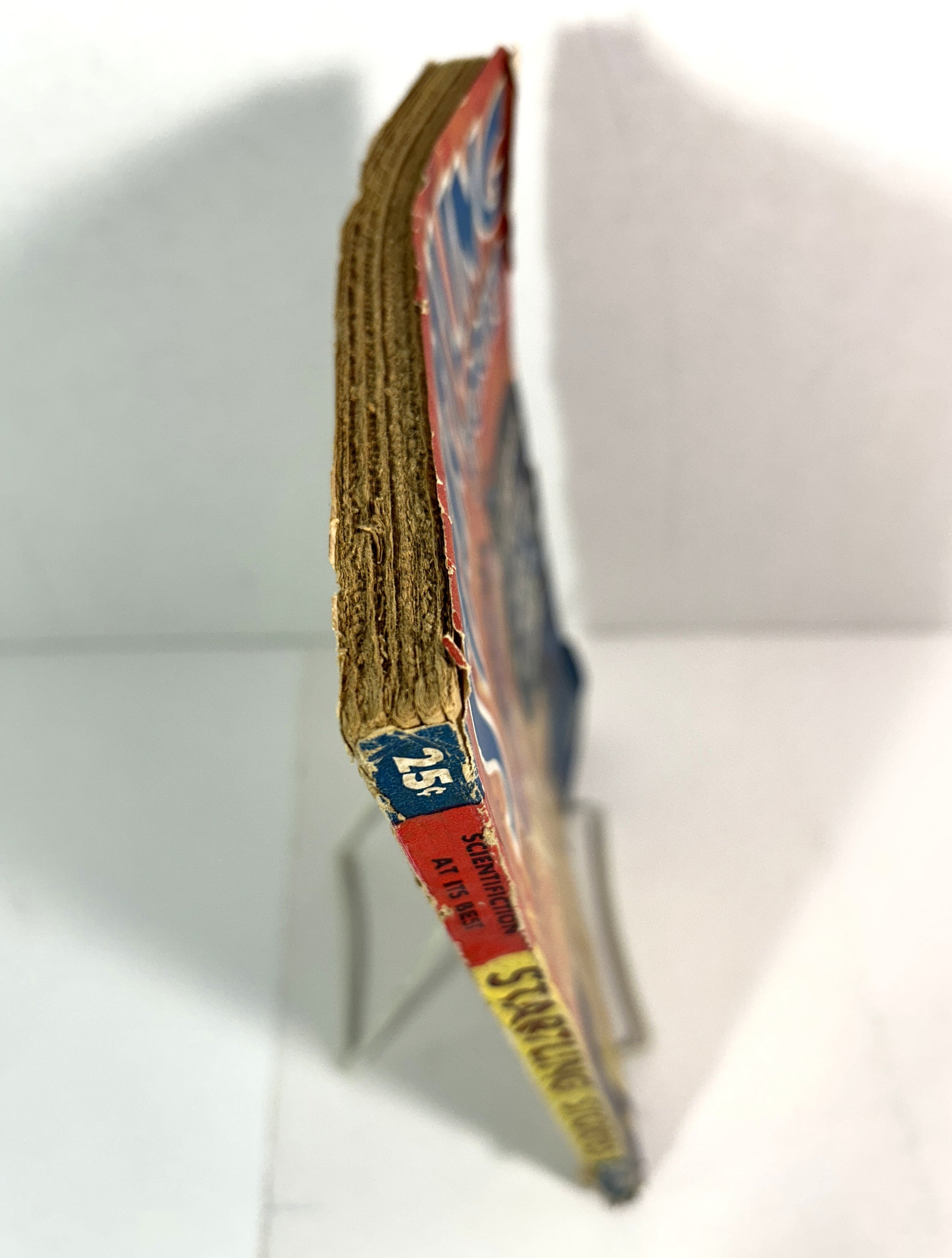 Good, vintage, softcover pulp magazine; the magazine is tight, square, showing heavily thumbed and age-toned pages (see photos) and pencil markings to the top corner of the first page (see photos) but otherwise showing only light additional wear; magazine cover (wrap) shows heavy shelf wear, including significant age-toning (see photos), heavy creasing and chipping along all edges and corners (see photos), marks to the front cover (see photos), heavy creasing along the spine (see photos), scuffing to the back panel (see photos), and foxing to the back panel (see photos) but remains in good, vintage, condition; purchaser signature may be required upon delivery. G2
