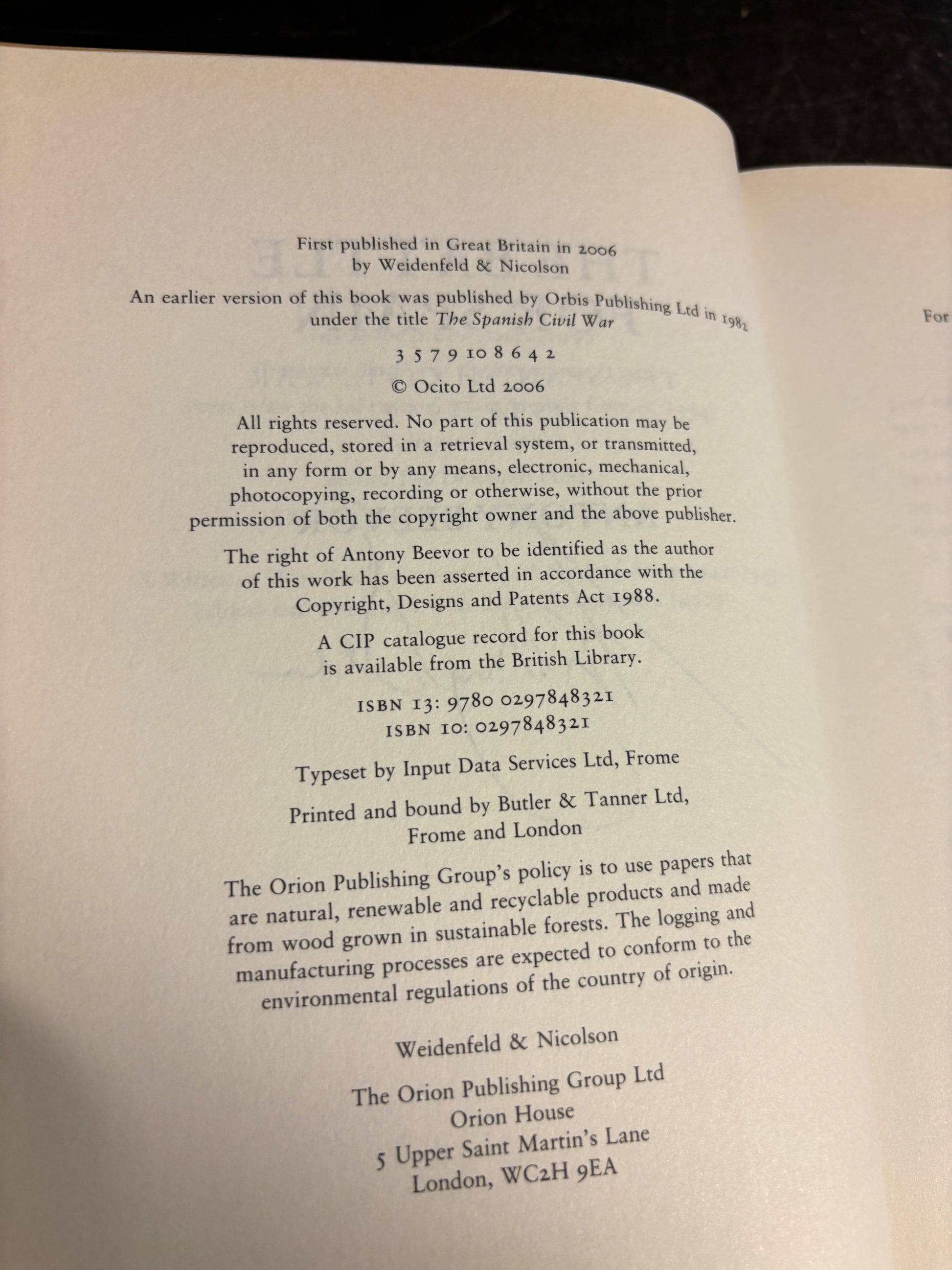 The Battle for Spain: The Spanish Civil War 1936-1939 Antony Beevor SIGNED 1st Edition UK 2006