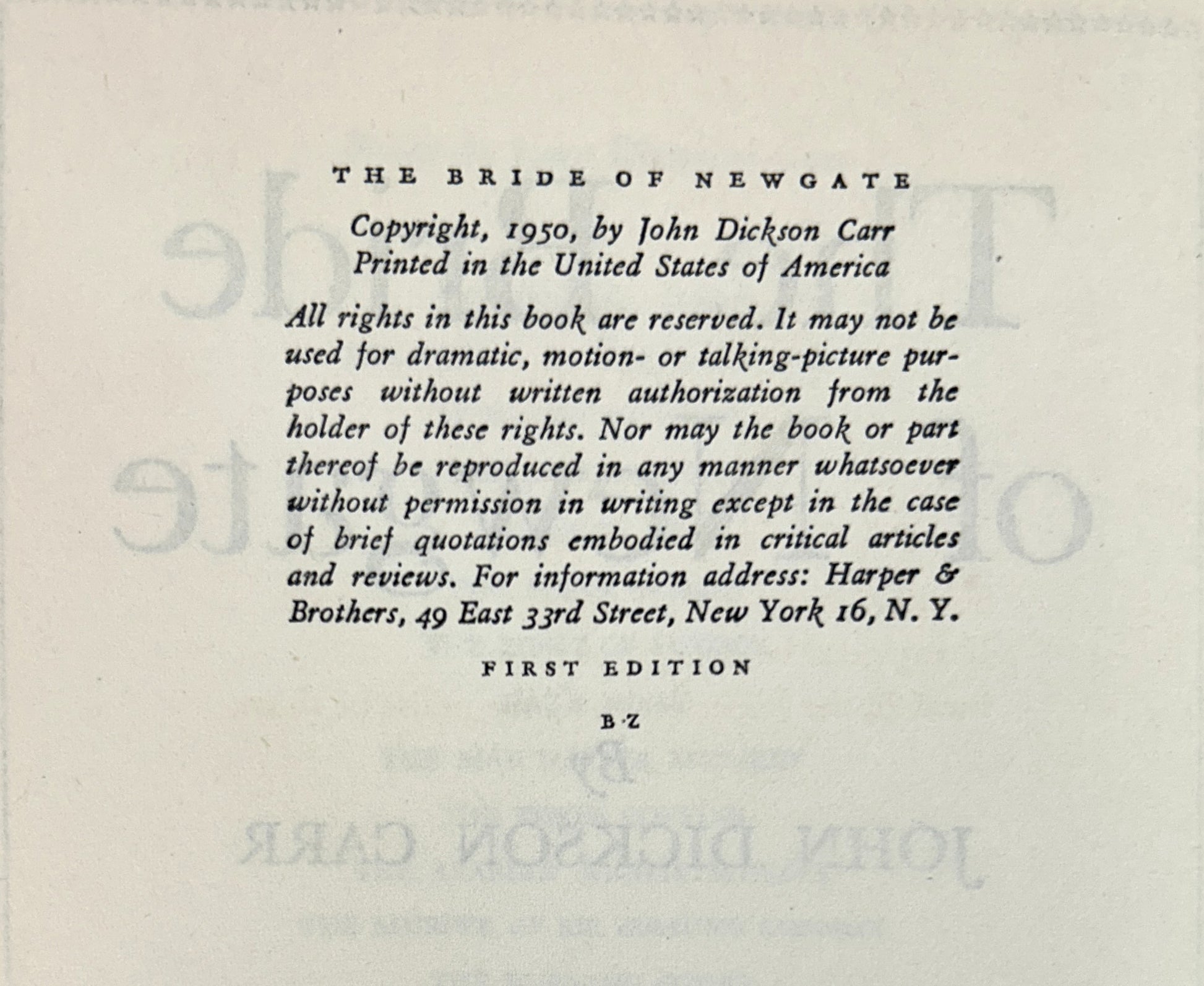 The Bride of Newgate by John Dickson Carr 1950 1st Edition