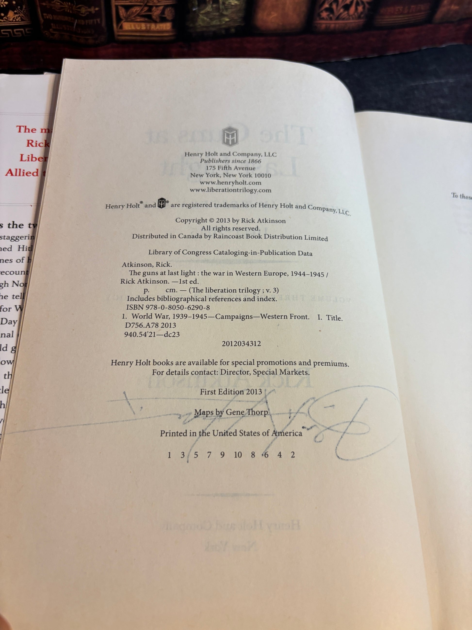 The Guns at Last Light by Rick Atkinson SIGNED 1st Edition 2013 Hardcover