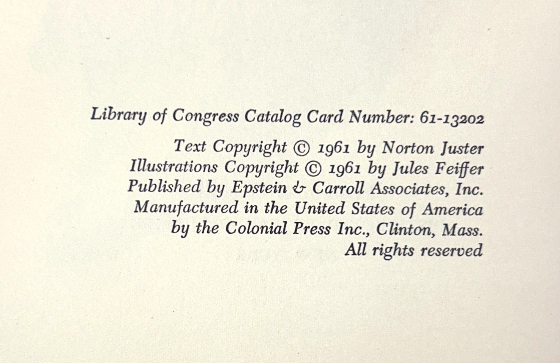 The Phantom Tollbooth by Norton Just illus by Jules Feiffer 1961 1st Edition 1st Printing