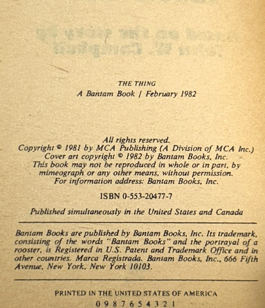 The Thing by Alan Dean Foster 1982 1st Printing