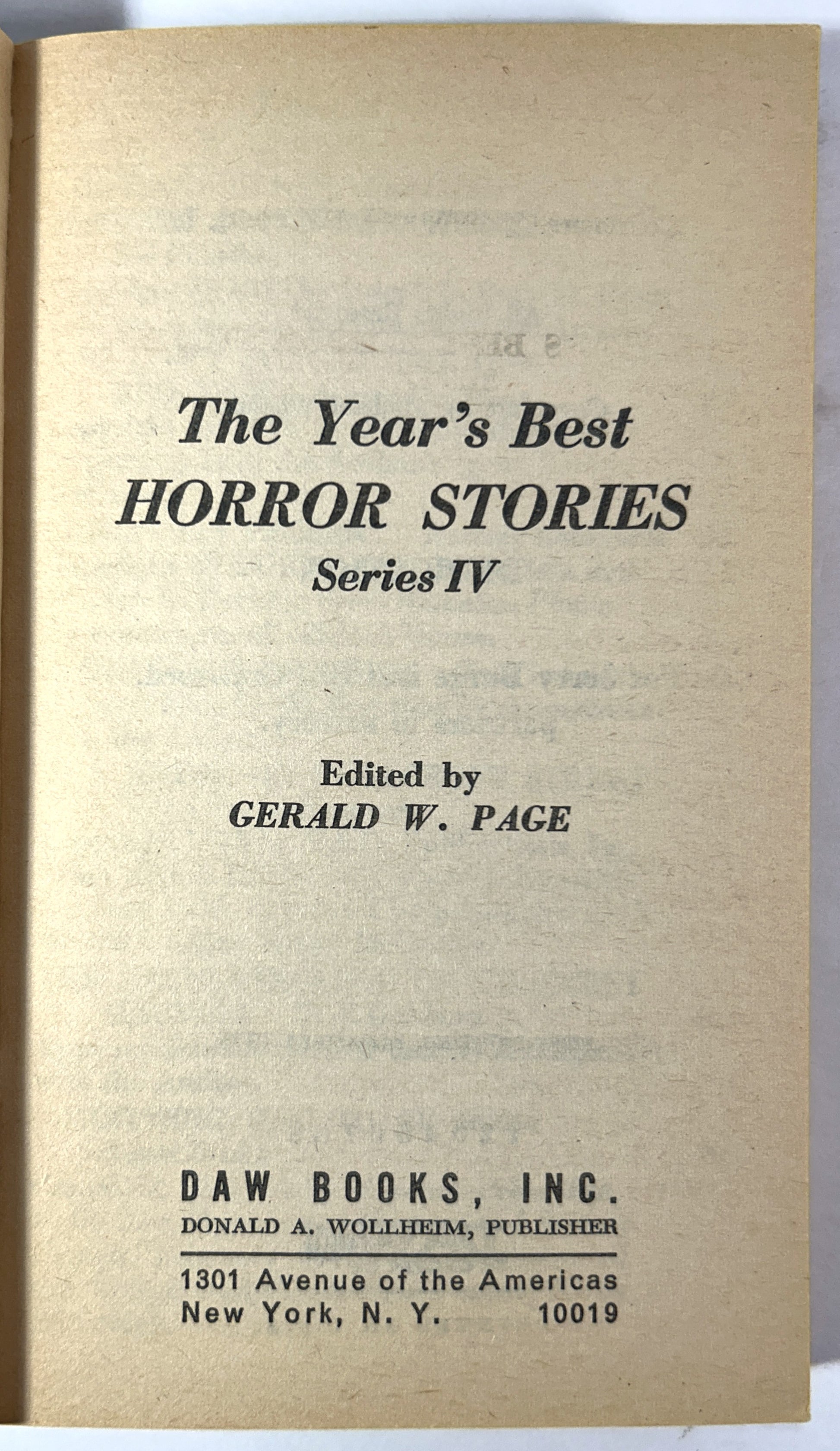 The Year's Best Horror Stories (Series IV) edited by Gerald W. Page 1976 1st Printing