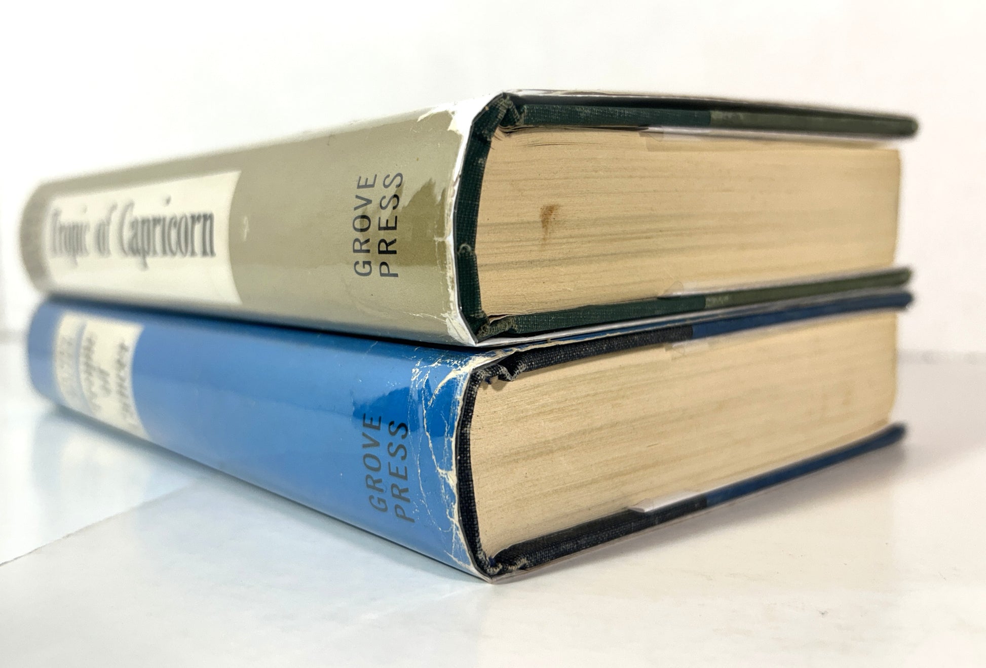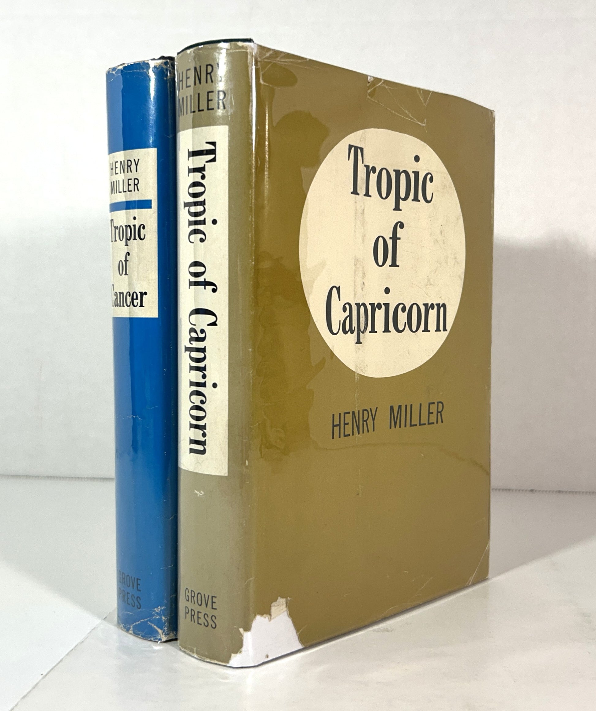 Set of 2 good, vintage, hardcover books in good dust jackets; each book is clean, tight, square, and free of any markings showing well thumbed and age-toned pages (see photos), scuffing to the page edges (see photos), and rubbing and bumping along the board edges (see photos) but otherwise showing only light additional wear; each unclipped dust jacket shows moderate shelf wear, including significant age-toning (see photos), chipping along the edges (see photos), chipping to the head and foot of the spines (see photos), sunning along the spines, particularly Capricorn (see photos), scuffing to the back panels (see photos), foxing to the flaps (see photos), and a large, open tear to the foot of Capricorn's front hinge (see photos) but overall remains in good, vintage, condition; Tropics of Cancer - first edition, third printing and Tropics of Capricorn - first edition, first printing; purchaser signature may be required upon delivery. B4