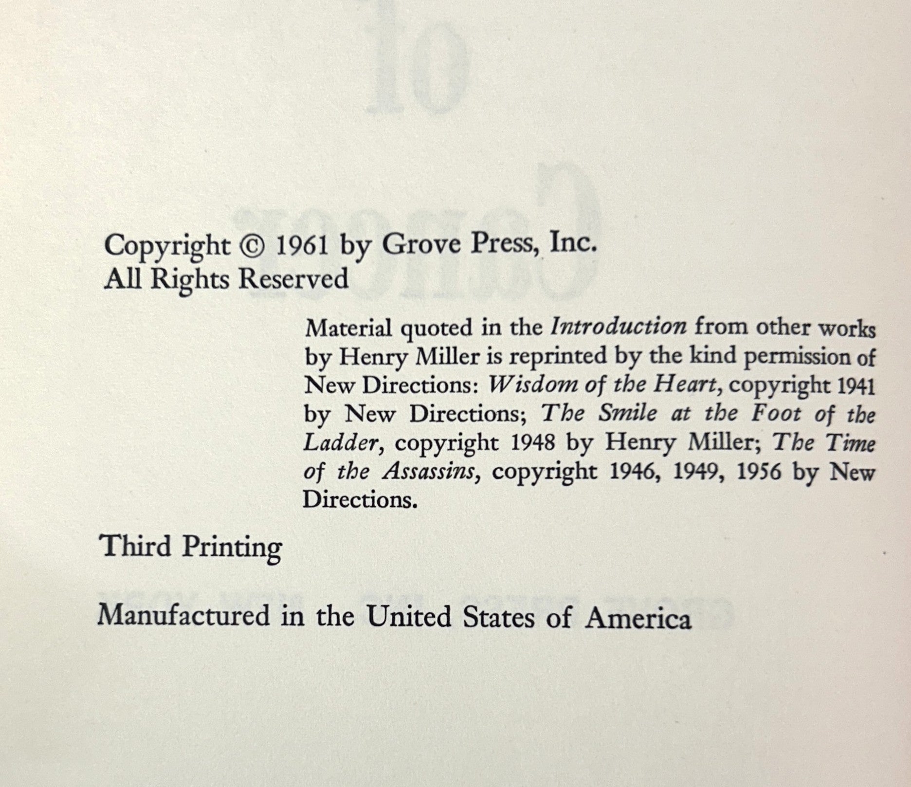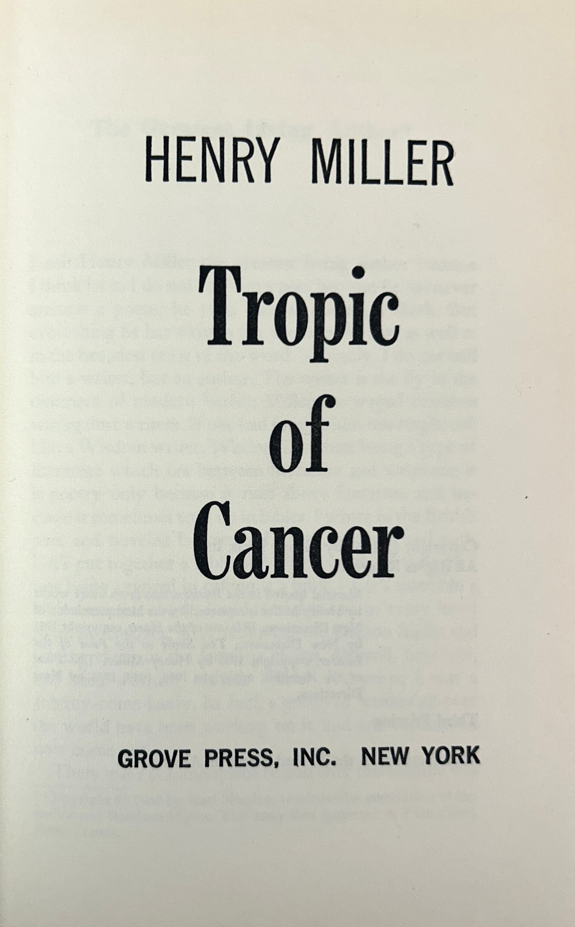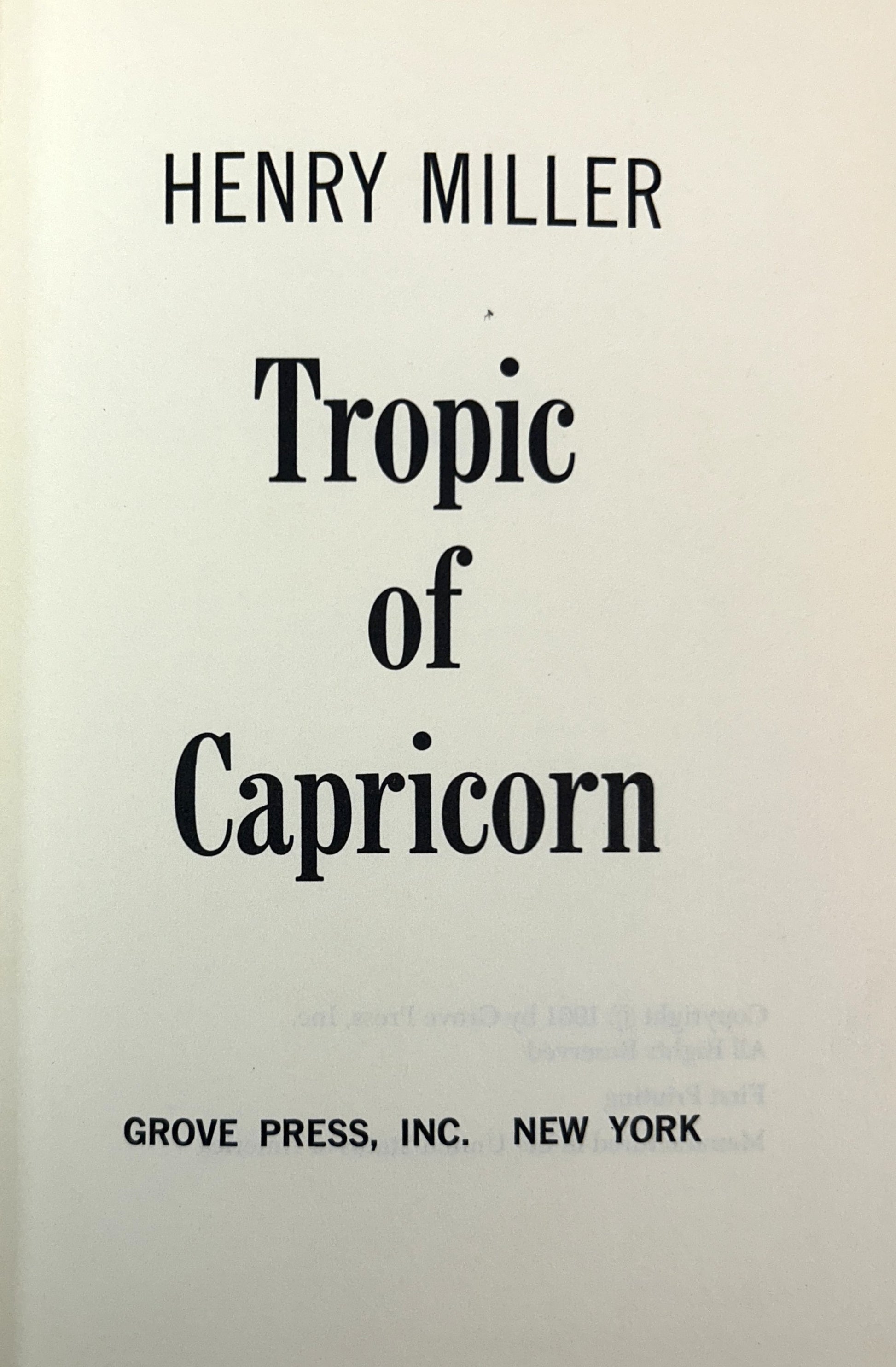 Tropic of Capricorn/Tropic of Cancer by Henry Miller 1961 1st/3rd Printings