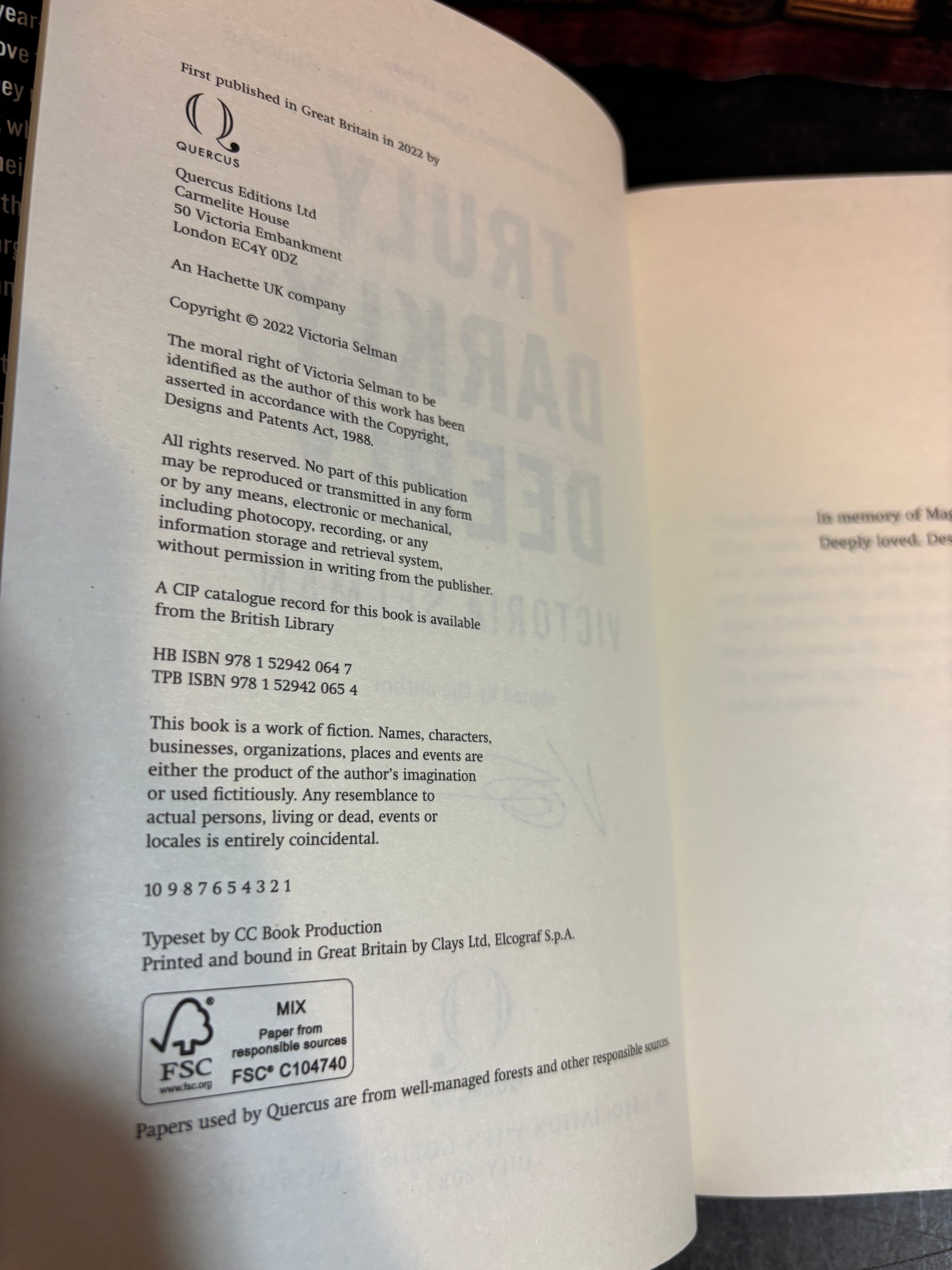 Truly Darkly Deeply by Victoria Selman SIGNED & Numbered #1164/1500 1st Edition w/ Slipcase