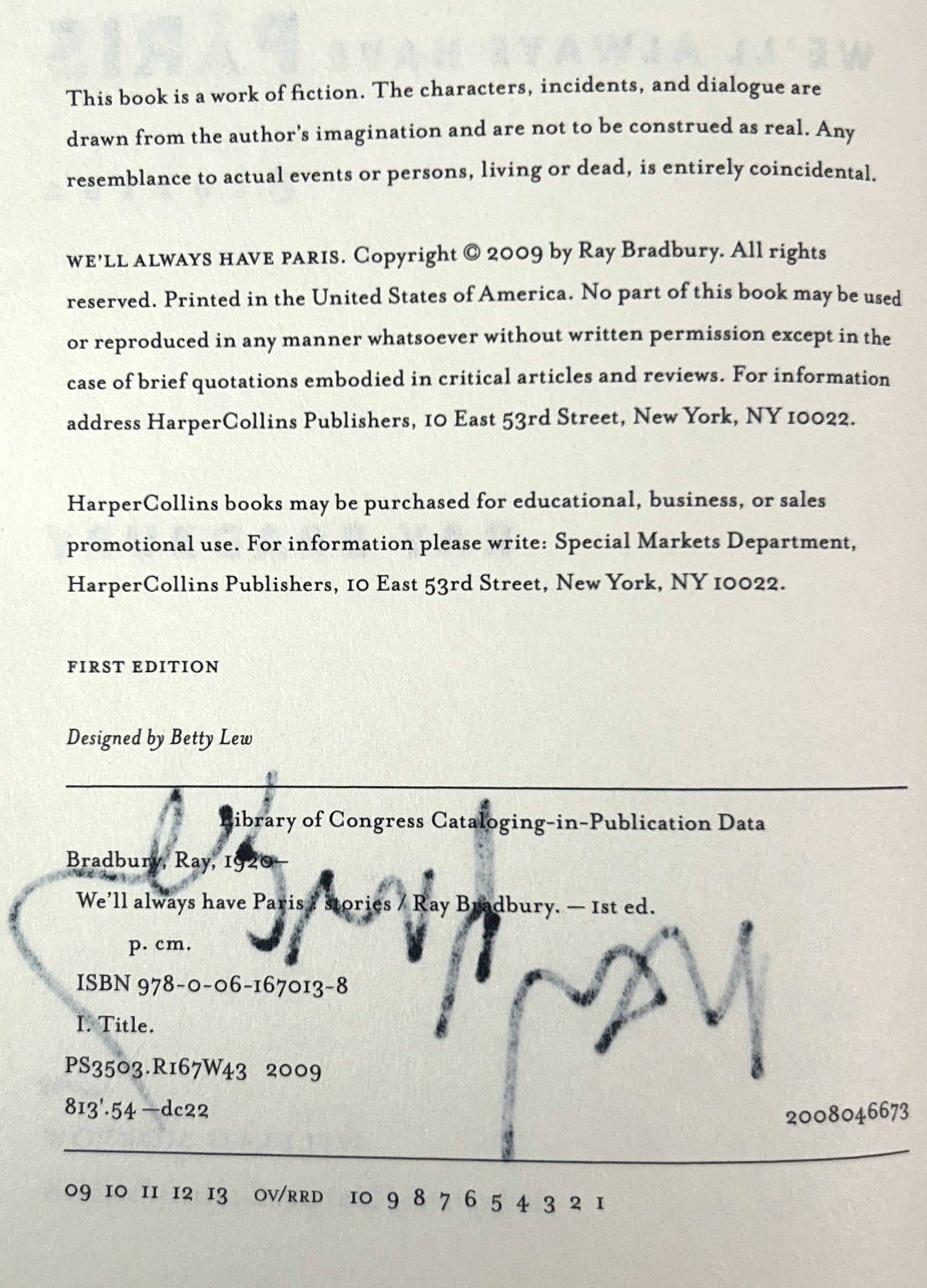 We'll Always Have Paris by Ray Bradbury 2009 SIGNED 1st Edition